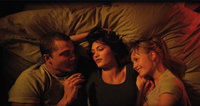 Wenn Gaspar Noé einen 'Liebesfilm' in die Kinos bringt und im Titel der Zusatz '3D' auftaucht, dann ist das nicht – wie mittlerweile Konsens – als Option zu deuten zwischen zwei Entscheidungen, wie z.B. Nachos mit Käse oder Chilli-Soße, sondern als konzeptuelle Notwendigkeit. Das in Cannes dieser Film dann in einer Mitternachtsvorstellung Premiere feiert, ist nur so zu verstehen, dass auch unter Cineasten die untrennbare Verbindung zwischen Kino und Erotik noch nicht die notwendige Akzeptanz gefunden hat. Dabei sollte bei Noé die Gefahr der Klassifizierung seines Films als Pornografie als unbegründbar gelten, ist er doch ein anerkannter Meister der filmischen Körperlichkeit. Und die ästhetische Umsetzung unter Zuhilfenahme von Kubricks Farbpalette aus EYES WIDE SHUT verweist auf ehrenwerte Vorsätze. Wie schon in IRREVERSIBLE, seinem bislang größten Erfolg, wird auch hier die Handlung vom Ende her erzählt. Murphy (Karl Glusmann) wacht sichtlich gerädert im Rahmen seiner Kleinfamilie mit Omi (Klara Kristin) auf. Als ihn ein sehr besorgtes Telefonat ereilt, beginnt er in einer Serie von Flashbacks seine Beziehung zu Electra (Aomi Muyock) zu reflektieren, die durch das Einsetzen einer ungeplanten Vaterschaft ein jähes Ende fand. Benôit Debies Kamera begleitet die Darsteller auf einem emotionalen Parcours: das erste Treffen, eine schüchterne Annäherung, das erste körperliche Herantasten, welches sich zunehmend normalisiert, die ersten Experimente, der erste Dreier mit Omi... Noé eröffnet eine unausgesprochene Einladung der Teilhabe an das Liebesspiel der Protagonisten, das an einigen Stellen durchaus real ist, eine wie auch er sie erhalten hat, um in die Erfahrungen seiner Freunde eingeweiht zu werden, aus denen er sich nun für seinen Film bedient. Im Rahmen dieser 'Öffnung' ist nun jede/r geladen sich ein Urteil zu bilden.