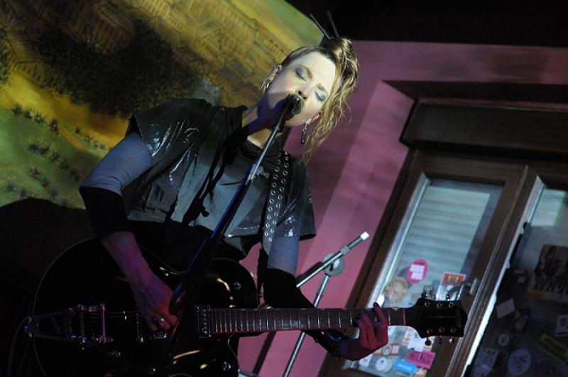 Kein #ThrowbackThursday und auch kein Online-Konzert, nein, an diesem sommerlichen Donnerstagabend steht Brigitte Handley, Frontfrau des australischen Düster-Rock-Trios The Dark Shadows, tatsächlich in einem echten Laden auf einer echten Bühne und spielt – mit dem gebotenem Abstand – live vor echtem Publikum. Allein das ist nach vier Monaten ohne Konzerte schon Grund zur Freude, aber die aus Sydney stammende Musikerin punktet auch musikalisch. Anders als auf ihrem 2017er-Album ´The Edge Of Silence´, bei dem ihr oft die Akustikgitarre reichte, um die wuchtigen Lieder ihrer Band solistisch zu entschlacken, und die melancholisch-zerbrechliche Seite ihres Schaffens in den Fokus gerückt war, sorgen an diesem Abend eine Stromgitarre und diverse Effektgeräte dafür, dass selbst bei diesem Soloauftritt zumeist die dunkel funkelnde Intensität der Bandversionen im Vordergrund steht und so die breit gefächerten Inspirationen aus Rockabilly, New Wave, Goth-Rock und mehr widergespiegelt werden. Die bisweilen geradezu grimmige Entschlossenheit, die ihr beim Singen oft ins Gesicht geschrieben steht, tauscht Handley bei ihren Ansagen gegen ein schüchternes Lächeln, wenn sie von ihren Lockdown-Erfahrungen erzählt oder sich ganz besonders über die Gäste aus der „verbotenen Stadt“ (sprich: Düsseldorf) freut. Tauchten in der Vergangenheit mit Kraftwerks ´Das Modell´ oder ´Eisbär´ von Grauzone auch immer mal wieder deutschsprachige Coverversionen in ihrem Programm auf, verlässt sich Handley vor einem Publikum aus eingefleischten Fans und Freunden im E.D.P. 75 Minuten lang ganz auf ihre eigenen Songs und unterstreicht bei Highlights wie ´Distänt Mind´ und ´Identity´, dass ihr poppige Eingängigkeit genauso gut zu Gesicht steht wie punkige Wucht.